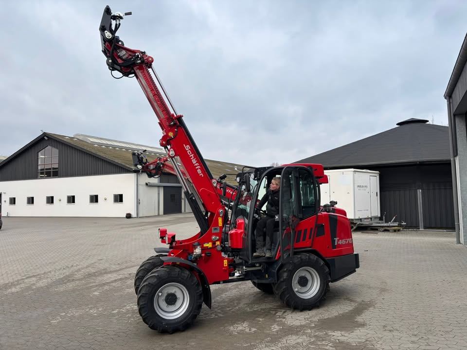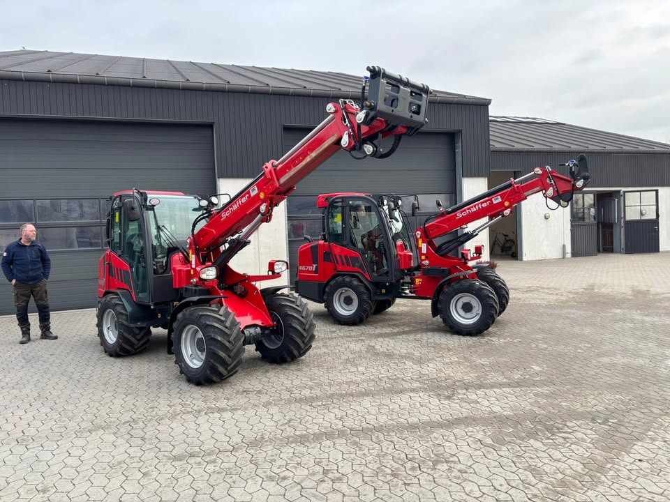 Vi har haft fornøjelsen af at levere to kompakte og stærke Schäffer teleskoplæssere, model 4670T, udstyret med bl.a. aircondition i komfortkabinen – klar til daglig drift i topklasse 💪