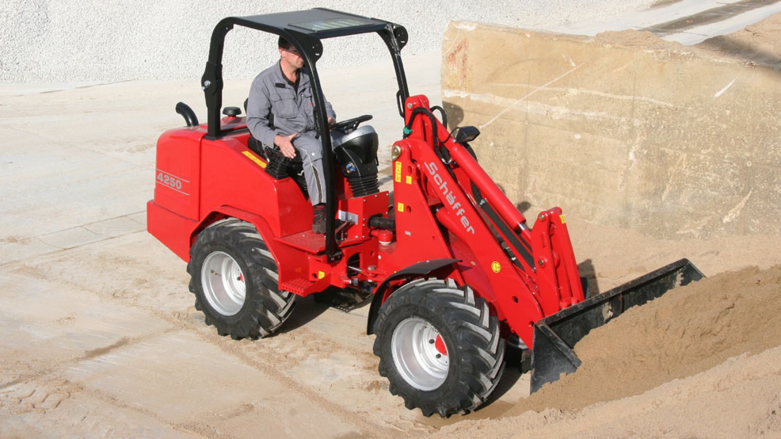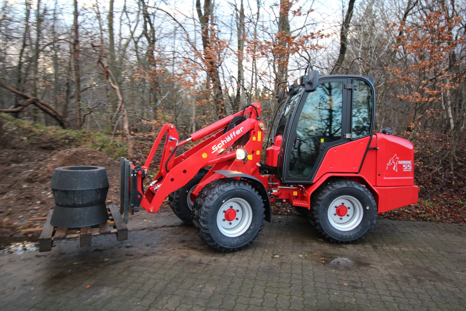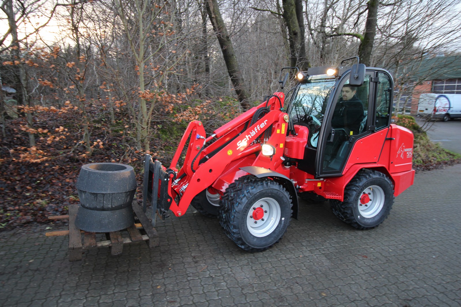 Nordic 50 tilhör mellanklassen hos Schäffer med en arbetsvikt på drygt 3,5 t. Även den största vagn kan lastas utan problem tack vare en lyfthöjd på 3,26 m. Hardtop-modellera kan utrustas med fram- och bakruta och blir därmed till ett fördelaktigt alternativ till den komfortabla förarhytten. Kraftiga Kubotamotorer med 44 kW (60 HK) ombesörjer driften. Som standard kan man under belastning skifta mellan två växlar. |