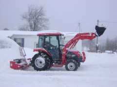 TYM T433 HST, som med sin gode komfort kabine, hvor ting som Aircondition, Radio og arbejdslys alt sammen er standard.